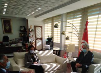 اجتمع اليوم السبت 20 فيفري 2021، وزير الفلاحة والموارد المائيّة والصّيد البحري بالنّيابة السيّد محمد الفاضل كريّم بالسيد الرئيس المدير العام للدّيوان الوطني للأراضي الدّوليّة،...