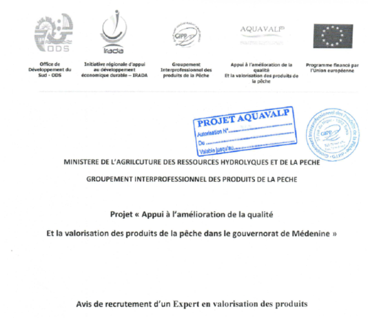 Avis de recrutement d’un Expert en valorisation des produits de la pêche dans le cadre du projet AQUAVALP