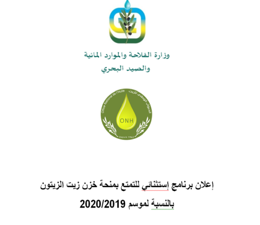 إعلان برنامج إستثنائي للتمتع بمنحة خزن زيت الزيتون بالنسبة لموسم 2019/2020