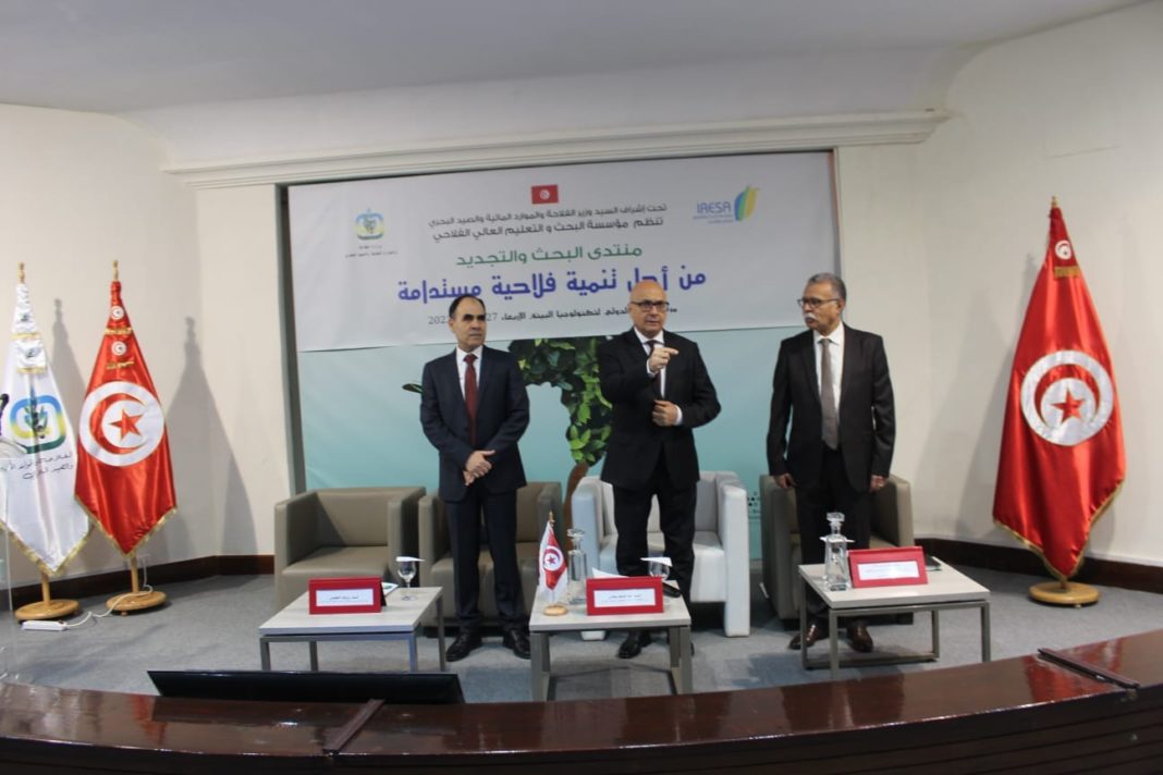 كما دعا كافة الفاعلين من بحث علمي وإدارات فنية وهياكل تنمية وإرشاد ومهنيين الى إطلاق حوار مشترك بهدف صياغة مقاربة تونسية لتثمين نتائج البحث وتحديد حاجيّات القطاع ونشر نتائج البحث على أوسع نطاق وتبنّيها من قبل الفلاحين والبحارة في إطار تكوين المكونين والمرشدين والتقنيين حتى يضطلعوا بمهام التّعريف بها ونقلها الى مستغليها.