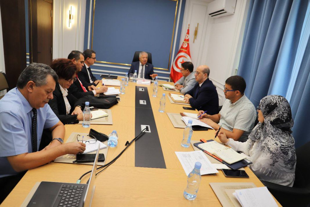 في إطار الاستعدادات لضمان تأمين مياه الشرب والري في صائفة 2026، أشرف يوم 02 أكتوبر 2025، السّيد حمّادي الحبيّب كاتب الدّولة لدى وزير الفلاحة والموارد المائيّة والصّيد البحري المكلّف بالمياه على جلسة عمل بحضور الرئيس المدير العام للشركة الوطنية لاستغلال وتوزيع المياه والمديرين العامين لكل من مكتب التخطيط والتوازنات المائية والإدارة العامة للسدود والأشغال المائية الكبرى والإدارة العامة للتهيئة والمحافظة على الأراضي الفلاحية وممثلين عن الإدارة العامة للموارد المائية والإدارة العامة للهندسة الريفية واستغلال المياه والإدارة العامة للإنتاج الفلاحي.