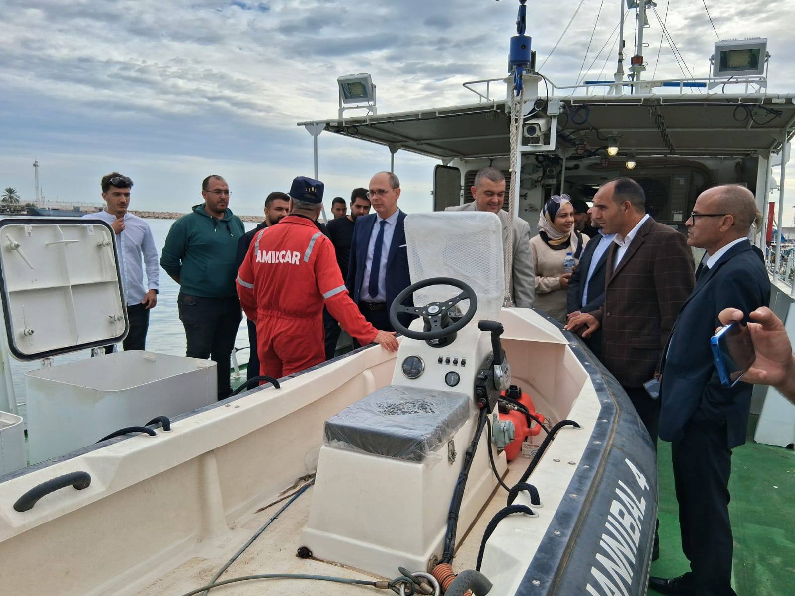 في إطار دعم القدرات الوطنية في مجال مراقبة أنشطة الصيد البحري وحماية الموارد البحرية، أدّى السيد رئيس ديوان وزير الفلاحة والموارد المائية والصيد البحري زيارة ميدانية إلى ميناء الصيد البحري بحلق الوادي للإعلان عن الانطلاق الرسمي لدخول السفينتين الجديدتين “حنبعل 3″ و”حنبعل 4” حيّز الاستغلال في مهام المراقبة البحرية.