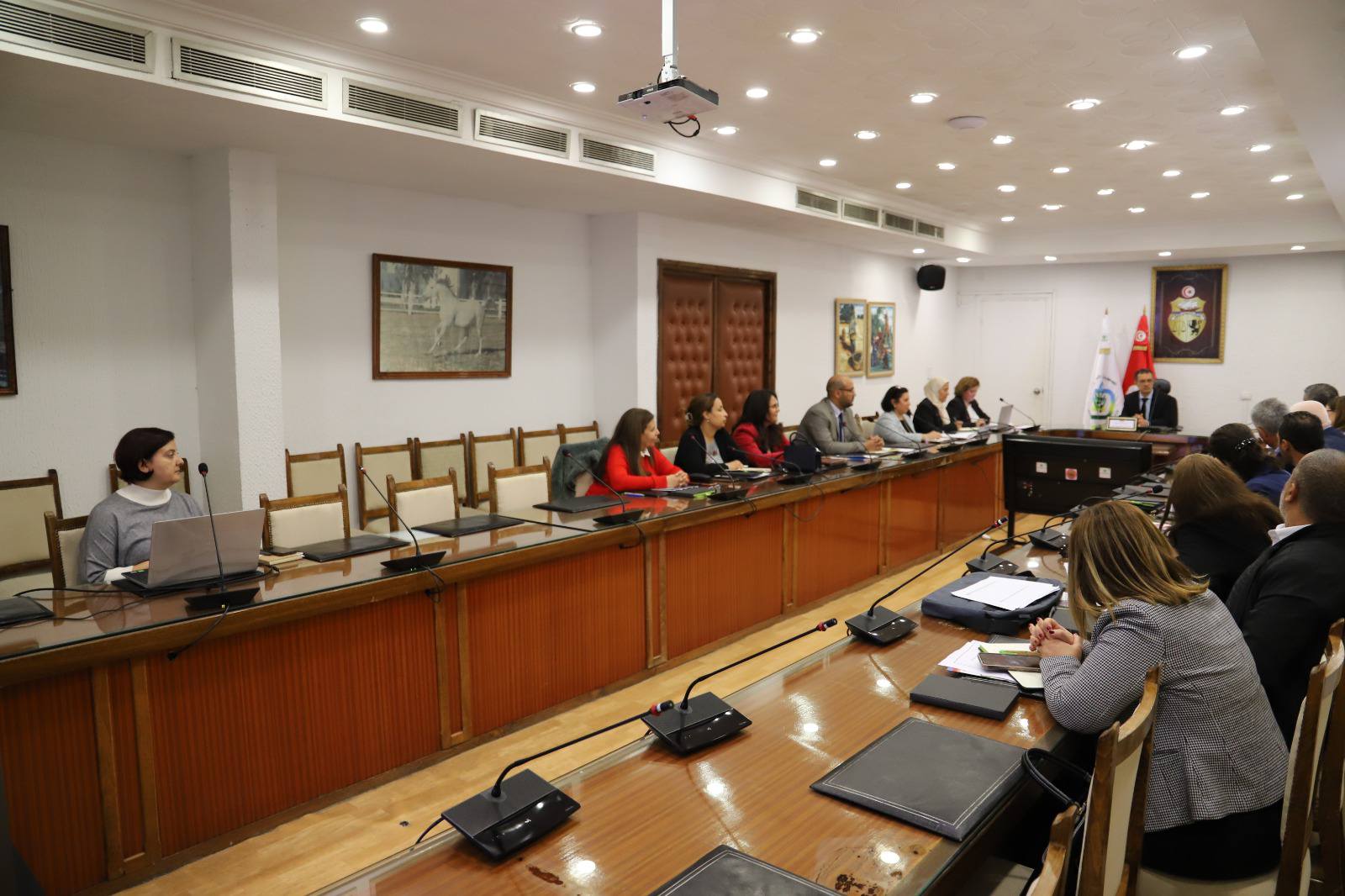أشرف اليوم الثلاثاء 03 مارس 2026 السيد عز الدين بن الشيخ وزير الفلاحة والموارد المائية والصيد البحري على جلسة عمل اللجنة الوطنية للفلاحة البيولوجية التي تم إحداثها بمقتضى قانون عدد 30 لسنة 1999 المتعلق بالفلاحة البيولوجية وذلك بحضور المكلفة بتسيير الإدارة العامة للفلاحة البيولوجية وأعضاء اللجنة.